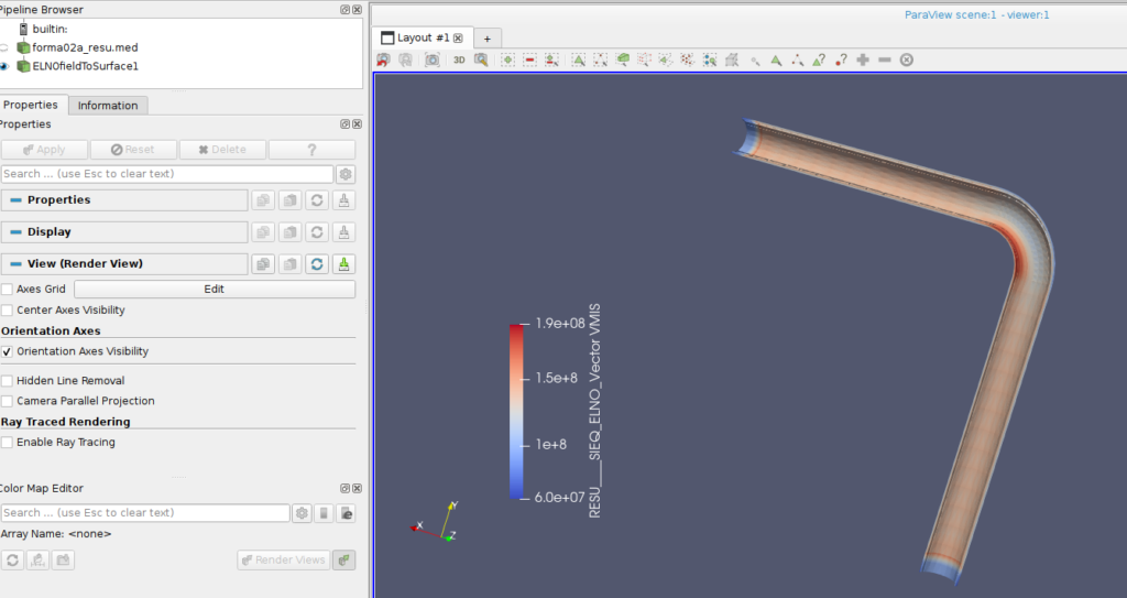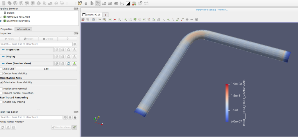 forma02aを試してみました。温度が変化するエルボ形状の解析です。手順はとても簡単です。